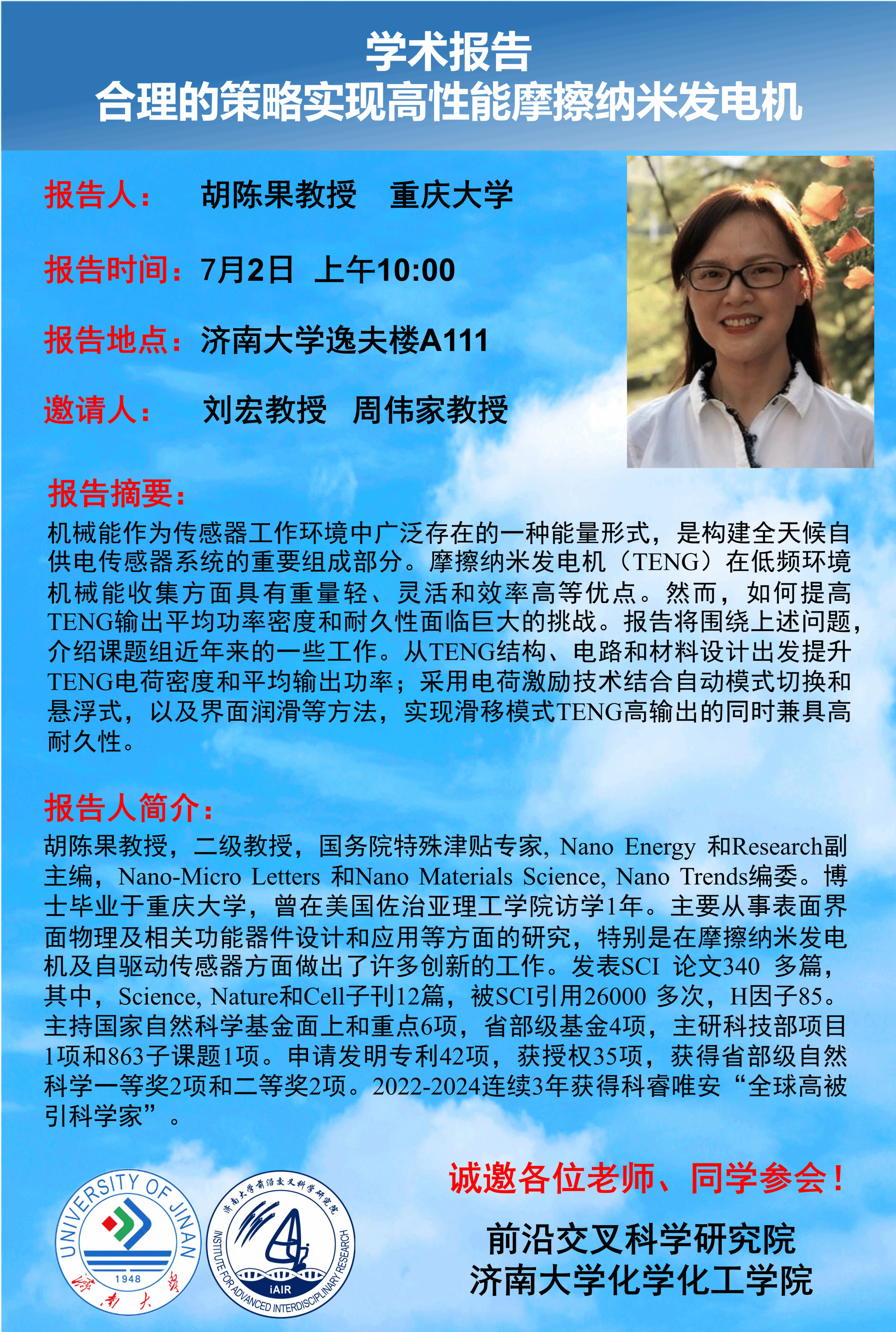 学术报告丨合理的策略实现高性能摩擦纳米发电机
