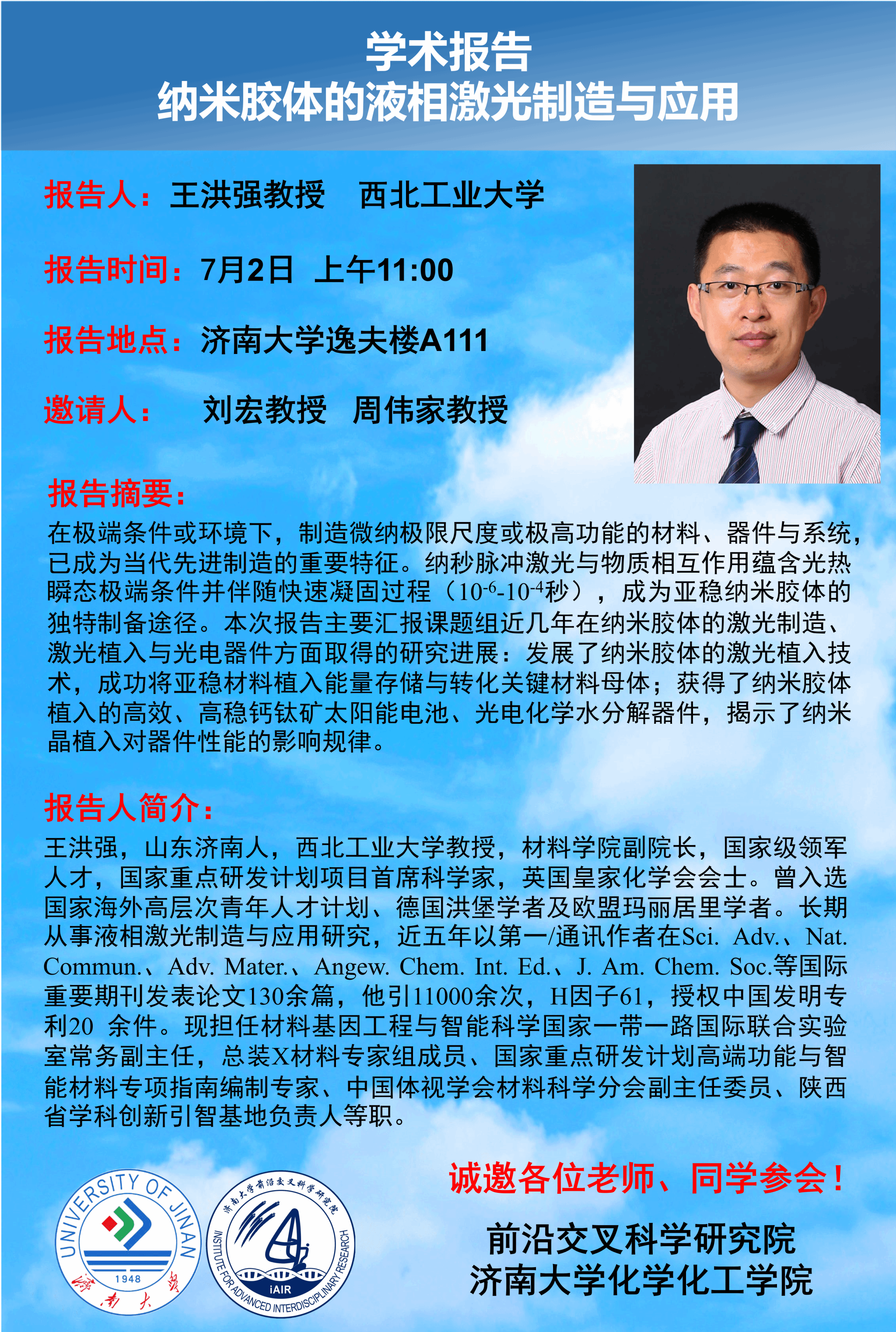 学术报告丨纳米胶体的液相激光制造与应用