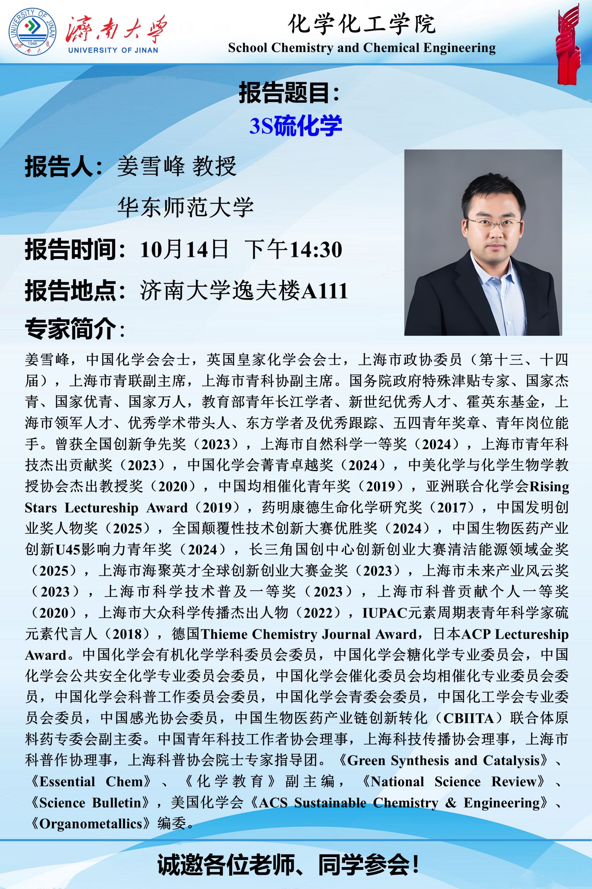 地址:山东省济南市南辛庄西路336号 化学化工学院(逸夫科学楼)