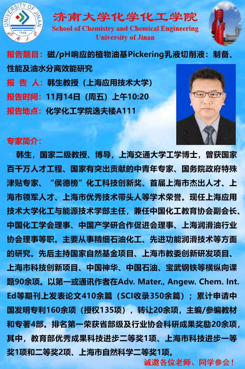 地址:山东省济南市南辛庄西路336号 化学化工学院(逸夫科学楼)