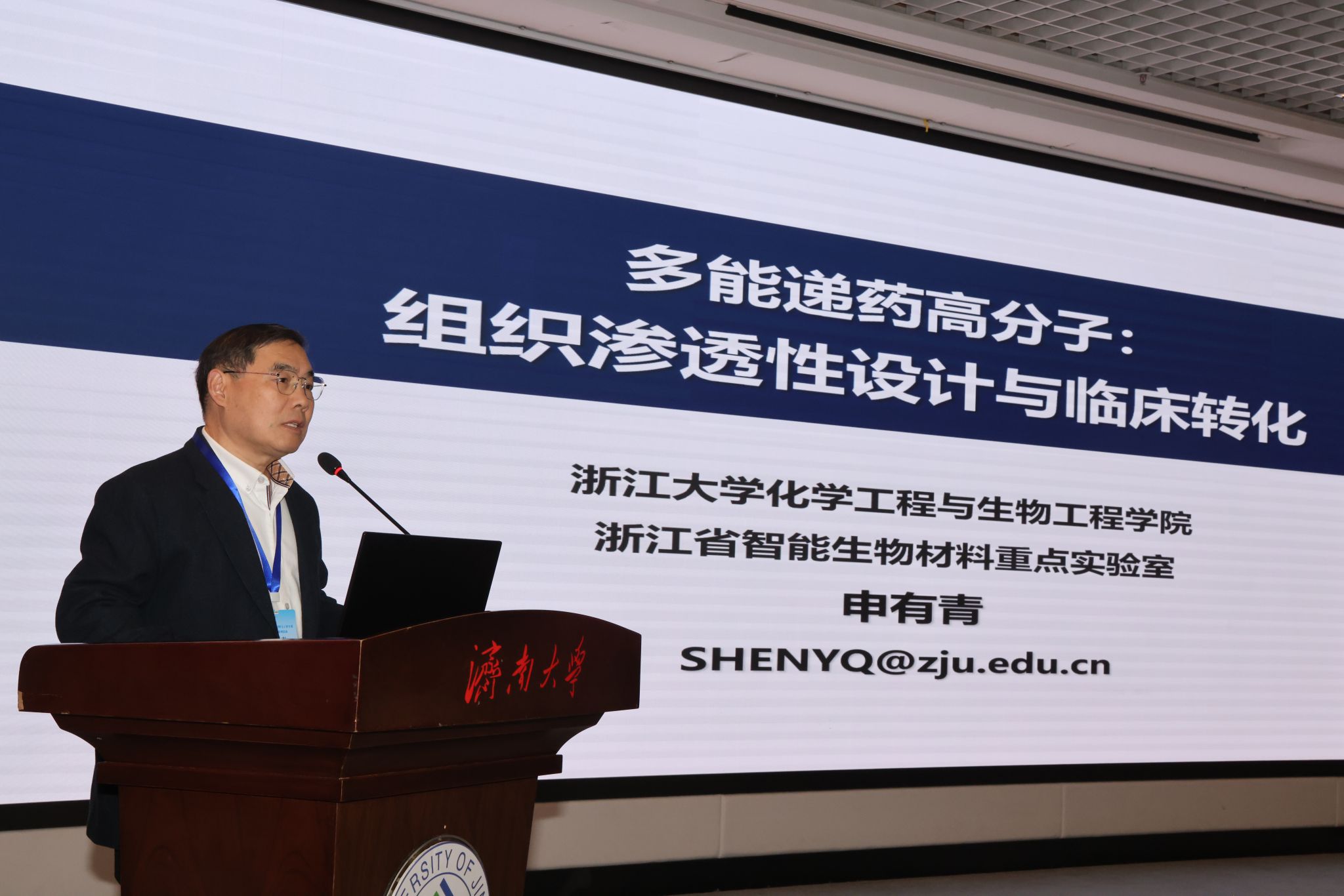 在院士报告环节,朱美芳院士带来题为“AI时代:高分子教育科技人才一体化实践”的报告。报告中,朱院士以教育为本、创新为魂、AI赋能为主线,结合个人科研与教学实践,系统阐释了产教融合在育人创新与科技突破中的重要意义,强调学科交叉及沉浸式教育对培养复合型创新人才的关键作用,并分享了教学与科研互促共进的经验体会。此外,她还就人工智能赋能教学与科研提出前瞻性思考。在与师生交流环节,朱院士针对高分子材料与工程专业的未来发展方向等问题进行了深入解答。申有青院士以“多能递药高分子:组织渗透高分子的设计与临床转化”为题作专题报告。报告中,申有青院士聚焦高分子药物递送体系面临的核心科学问题,深入阐释了如何通过精细的分子构筑与设计,实现对药物递送系统组织渗透行为的精准调控,为该领域的创新研究开辟了新路径,提供了新机遇。在互动环节,申院士回答了参会的企业界朋友问题,并针对多能递药高分子应用前景等问题进行了深入交流。报告后,化学化工学院党委书记于龙泉进行了总结发言。